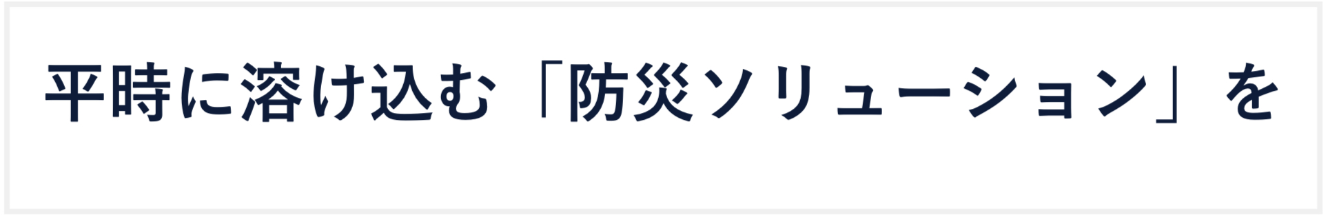 「災害時というのは、暮らしの延長にある生活そのもの。商品やサービス、インフラを新しく作るのではなく、既存のシステムや商品に『防災』という機能を付加させていく。テレビやパソコンのように、普及すると価格も安くなる。平時の暮らしを防災機能でアップデートすることで、意識しなくても災害への備えができるようにしたい」。島田社長は、モノやサービスを生み出す企業との連携を通して、暮らしの中に防災の機能を浸透させていく青写真を描いている。