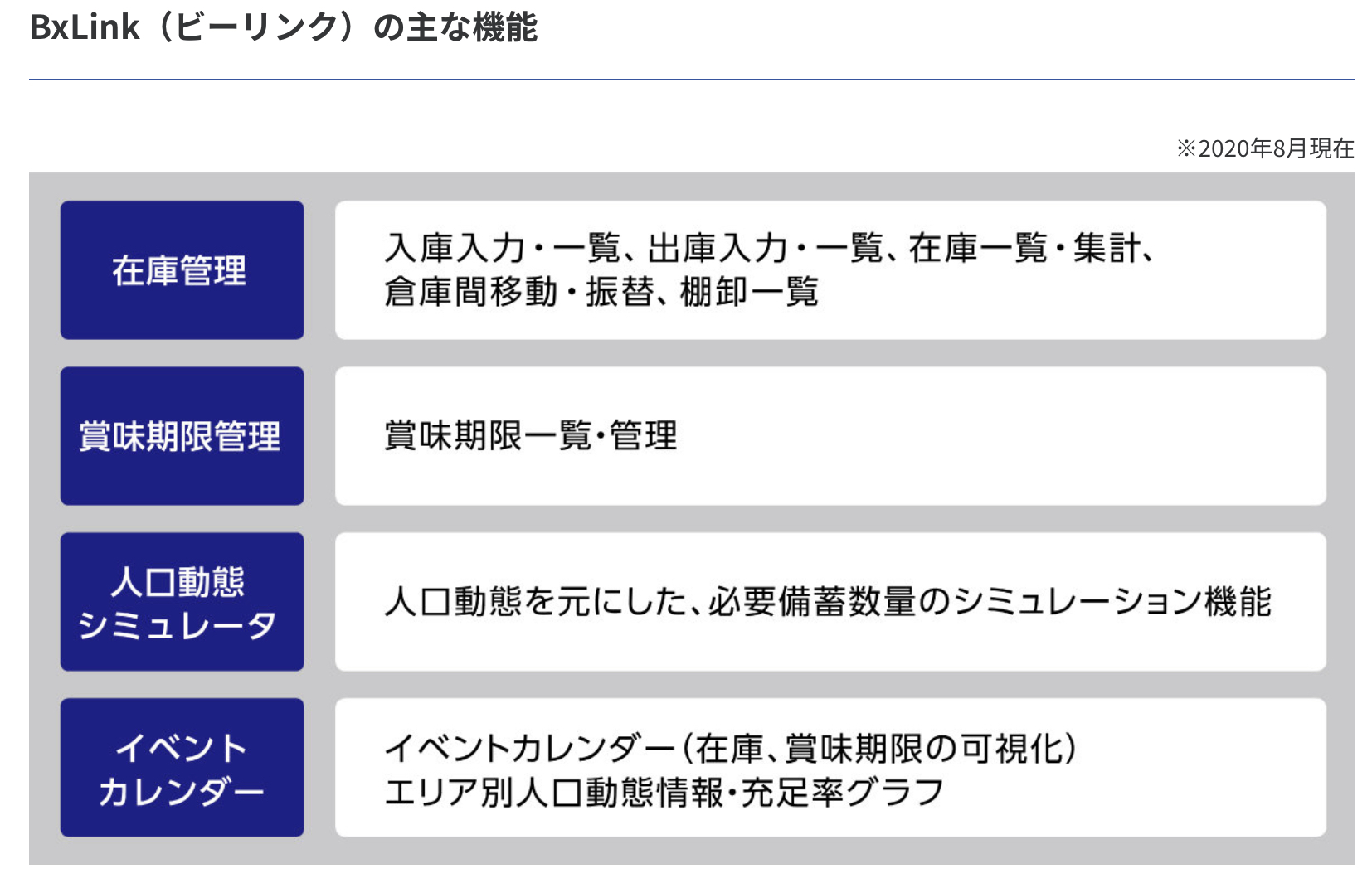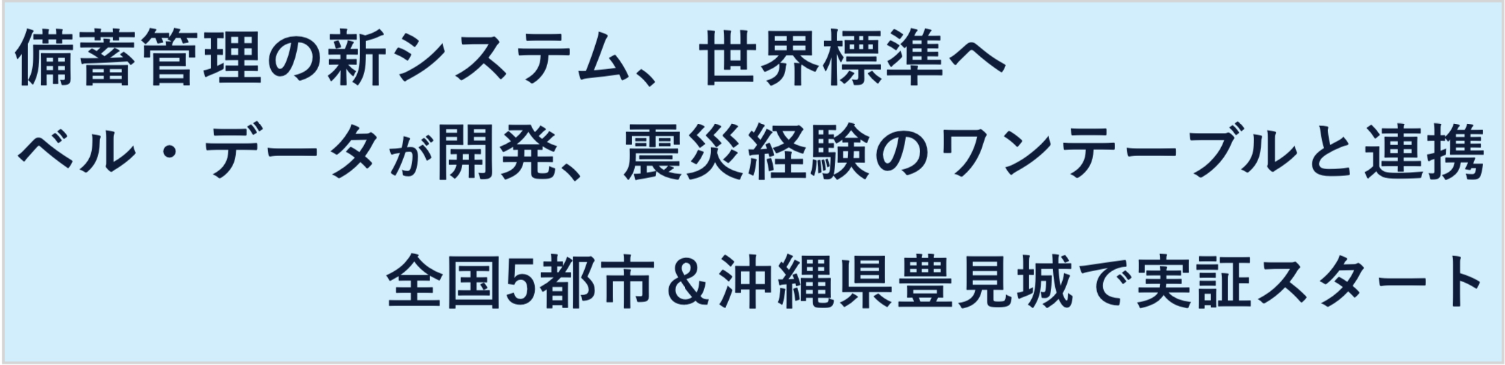 システムのデザイン、開発、保守・運用を手がけるベル・データ(東京都)が、東日本大震災の被災と避難生活の経験を基に防災関連の商品やビジネス開発を手がけるワンテーブル(宮城県)の知見を生かして、防災備蓄管理のプラットフォーム「B x Link(ビーリンク)」を開発した。9月以降、国の補助金などを活用する全国5都市に、ベル・データ社が単独で手がける沖縄県豊見城市を加え、全国6都市で実証実験をスタートさせている。