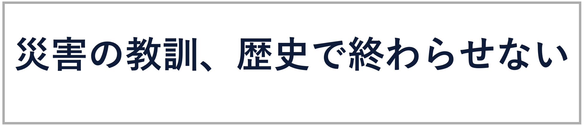 「過去の数々の大規模災害の教訓を、決して歴史の一ページで終わらせない」。